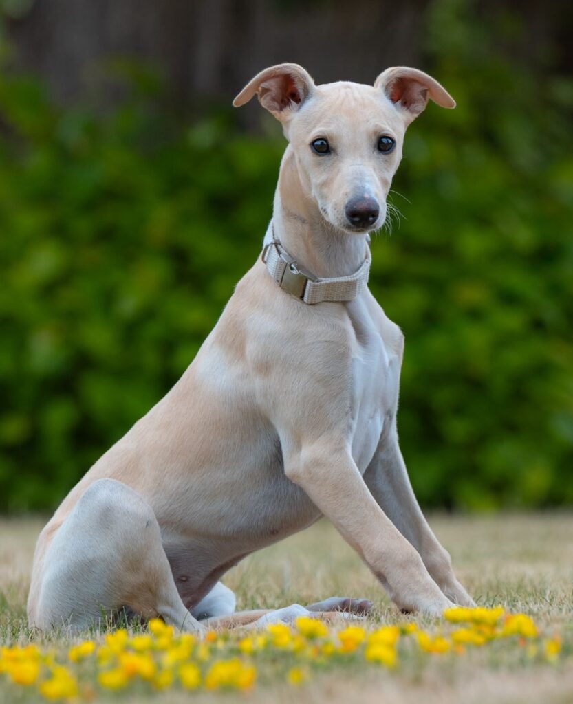 Whippets are medium-sized sighthounds known for their calm indoor nature and playful outdoor energy. They love lounging on the couch just as much as running in the yard.